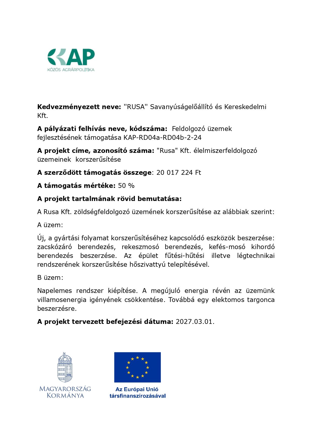Rusa Kft. Vecsés. Jókai u. 99. 2220 Telefon: +36-29-351-627 Mobil: +36-30-960-8872 E-mail cím: rusakft@rusa.hu